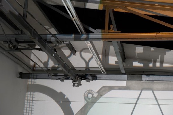 Three overhead projectors, inner parts of two video beamers. Site specific installation.