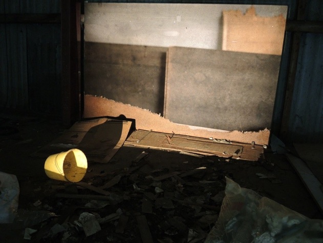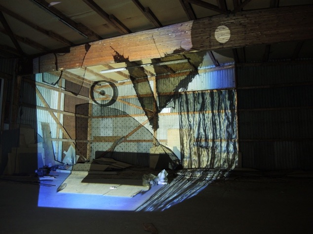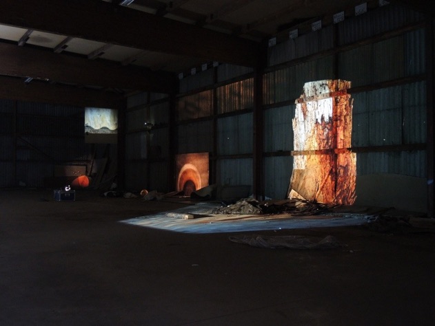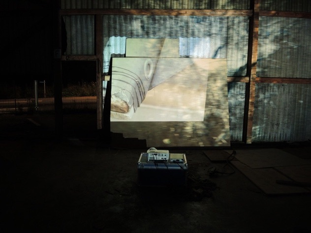 The spatial situation of a desolated, former wood storage in decay is the initial point of this installation parcours. Visual situations, material details and found items, all of them photographed, filmed and collected on site a few months before the exhibition took place, are re-projected and re-transferred into the very space with the help of various analogue and digital projection devices, such as slide projectors, overhead projectors and video beamers. Reality and image's reality are at the same time superposed and confronted with each other.