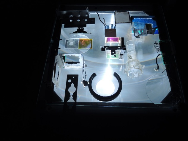 Overhead projector, inner parts of a video beamer.