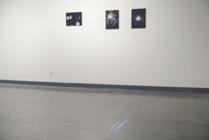 Floor video projection, 3 photo prints on aluDibond, 30x40 cm
