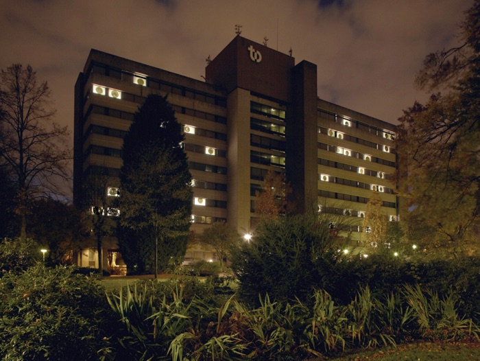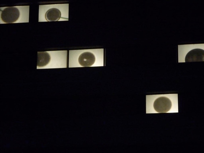 40 overhead projectors, ornament glasses, water, aquaristic pumps and tubes.